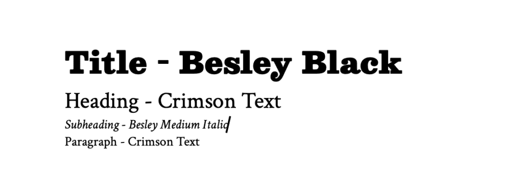 Use the decorative serif (Besley) only for big headings. The simpler one (Crimson Text) handles everything else. And make your size differences really obvious.